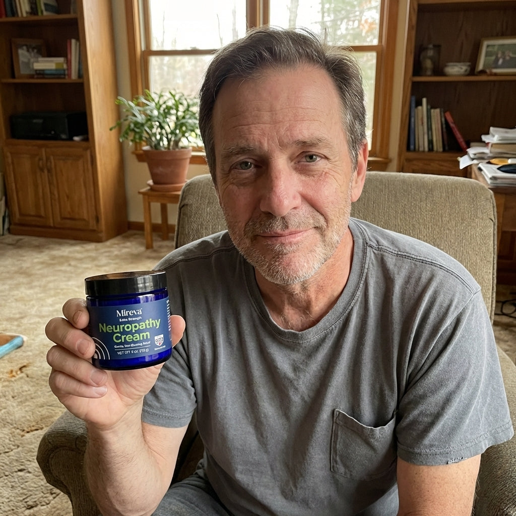 Mireva is specifically formulated for neuropathy — not general muscle or joint pain. The botanical complex is designed to absorb directly into the skin to reach nerve endings where the pain originates. Most customers notice a difference within the first few applications, with the biggest results seen after 2-4 weeks of consistent nightly use.